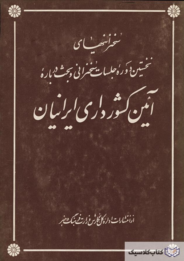 کتاب حاضر مجموعه سخنرانی های نخستین دوره جلسات سخنرانی و بحث درباره آیین کشورداری ایرانیان است که همزمان با چهارمین جشن فرهنگ و هنر از طرف وزارت فرهنگ و هنر در پایتخت تشکیل گردید .