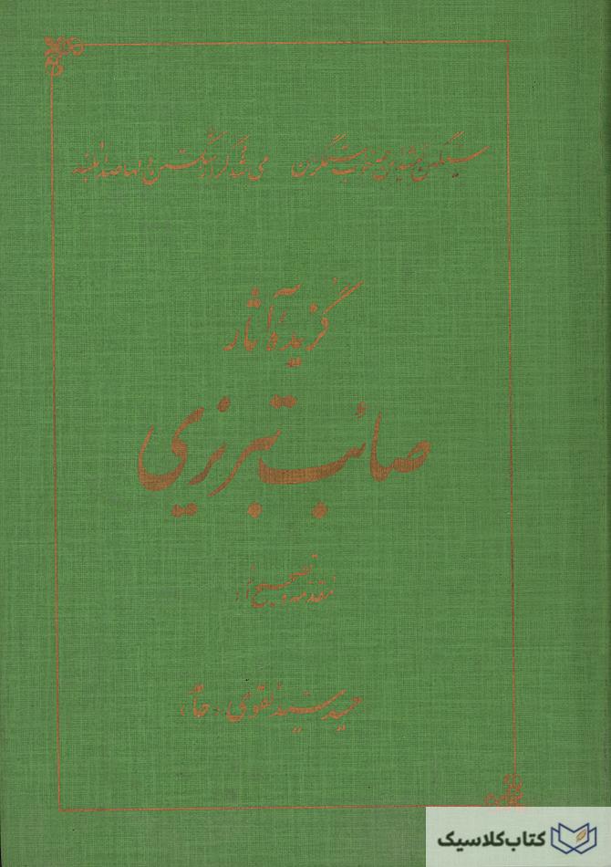 فهرست : پیشگفتار / غزلیات / نسمطات منسوب به صائب / غزلیات ترکی با ترجمه فارسی / تک بیت ها / معانی کلمات مشکل / فهرست غزلیات