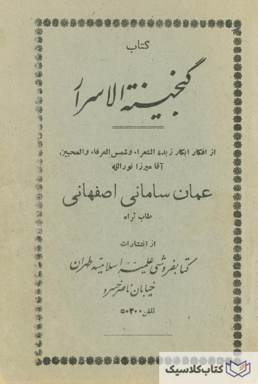 میرزا نورالله عمان سامانی ملقب به تاج الشعرا از شاعران صاحب نام و پر اوازه سال های ۱۲۵۸ تا ۱۳۲۲ قمری است . میرزا نورالله همانند بسیاری از نیاکان خود در سلک تصوف و عرفان بودند . در حلقه ارادتمندان سعادتعلی شاه اصفهانی از اقطاب سلسله صوفیه نعمت اللهیه . از بین شعرهایی که پیرامون حادثه عظیم عاشورا سروده شده مثنوی «گنجینه الاسرار» عمان یکی از تاثیرگذارترین و بهترین اشعار است. عمان سامانی در کتاب «گنجینه الاسرار» خود با نگاهی حماسی ـ عرفانی به واقعه عاشورا سعی کرده تصاویری زیبا و دلنواز از صحنههای خونین جنگ ۷۲ نفر عاشقی که برای رسیدن به مقام قرب الهی از همه هستی خویش دست شسته و در رکاب سید و سالار شهدا پا به میدان نبردی نابرابر گذاشتهاند خلق کند. هیچ شاعری تاکنون به این زیبایی این صحنه را به تصویر نکشیده است، عمان سامانی اوج اشتیاق و دلدادگی را در چند بیت میگنجاند عمان سامانی وقتی خنجر و خونریزی را به عشق پیوند میدهد بار منفی خنجر گرفته میشود، زیرا عشق همه چیز را شیرین میکند. در این مثنوی عظیم صحنههای نبرد یاران عاشق اباعبدالله با سپاه جهل و تاریکی آنقدر زیباست که خواننده را شیفته این عشق و دلدادگی میکند.