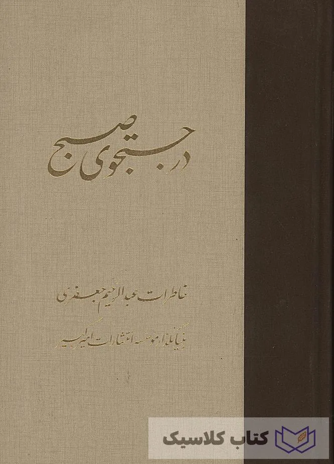 کتاب «در جستجوی صبح» خاطرات یکی از تاثیرگذارترین افراد در حوزه ی نشر «عبدالرحیم جعفری» بنیان گذار موسسه انتشارات امیرکبیر است. این کتاب که حاصل نگاه عمیق و ظریف عبدالرحیم جعفری به محیط اطراف خود است، دربرگیرنده ی اطلاعات جامع و ارزشمندی در حوزه ی تاریخ معاصر نیز هست. عبدالرحیم (تقی) جعفری (زادهٔ ۱۲ آبان ۱۲۹۸ در تهران – درگذشتهٔ ۱۱ مهر ۱۳۹۴ در تهران ) بنیانگذار و مدیر پیشین موسسه انتشاراتی امیر کبیر، مهمترین و گستردهترین مؤسسهٔ خصوصی چاپ و نشر کتاب در تاریخ ایران و خاورمیانه است. وی همچنین دارای بخشی از سهام انتشارات خوارزمی بود. وی تا سال ۱۳۵۸ دارنده و گردانندهٔ این بنگاههای انتشاراتی بود. در سال ۱۳۵۸، در جریان مصادره های ابتدای انقلاب اسلامی و به حکم دادگاه انقلاب ، سازمان تبلیغات اسلامی مؤسسه انتشارات امیرکبیر و خوارزمی را تصرف کرد .