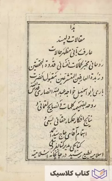 این کتاب شامل سه مقاله از خواجه عبدالله انصاری است که مقاله نخست شامل دو مکالمه و مقاله دوم شامل دوازده مخاطبه و مقاله سوم شامل دوازده موعظه است . کتاب نصایح الحکما و یا نصایح لقمانی نیز در قسمت پایانی ضمیمه این کتاب شده است .