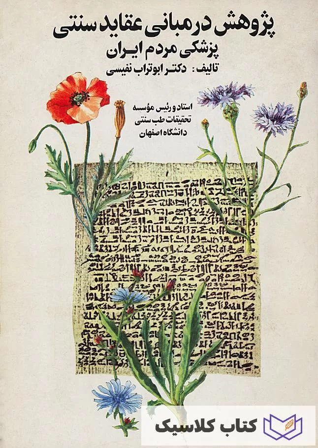 کتاب پژوهشی در مبانی عقاید سنتی پزشکی مردم ایران نوشته پزشک نامدار ایرانی دکتر ابوتراب نفیسی است؛ با دقت در آنچه به نام طب سنتی در بین مردم ایران و به احتمال زیاد در همه ملل ریشهدار و قدیمی نامیدهمیشود، می توان پایههای آن را بر مبانی زیر قرار داد: اسطورهای، مذهبی، تجربی و علمی. گرچه این سه منبع بنیانهای اصلی سنتها را شکل میدهند، ولی نمیتوان هیچگاه آن سه را کاملا از هم مجزا دانست؛ زیرا معمولا در هم اثر متقابل دارند و گاه جداکردن آنها مشکل خواهد بود. در این کتاب بیشتر به دو جنبه اسطورهای و مذهبی طب سنتی پرداخته شده است.